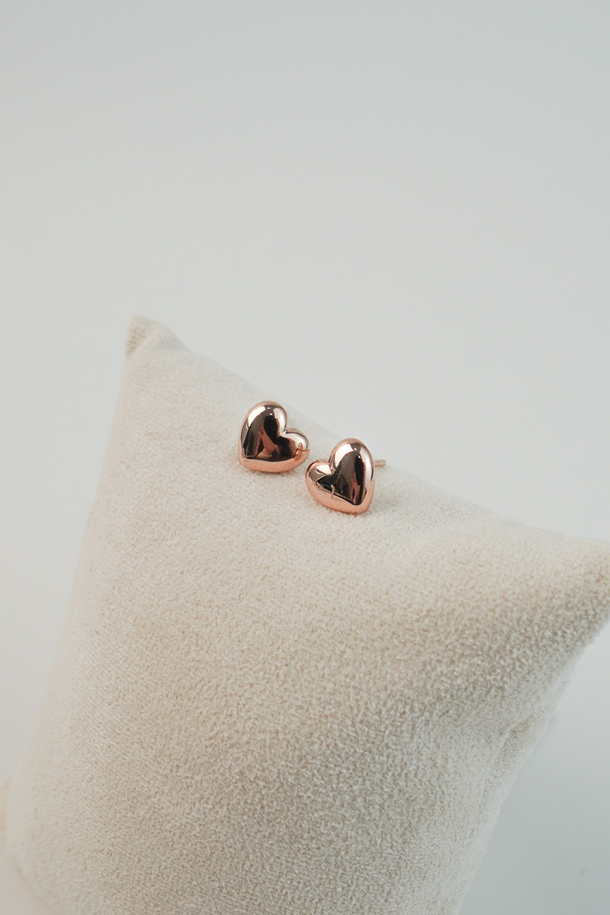 납작하면서도 통통한 하트 디자인의 귀걸이로 사랑스러운 분위기를 내어주죠~